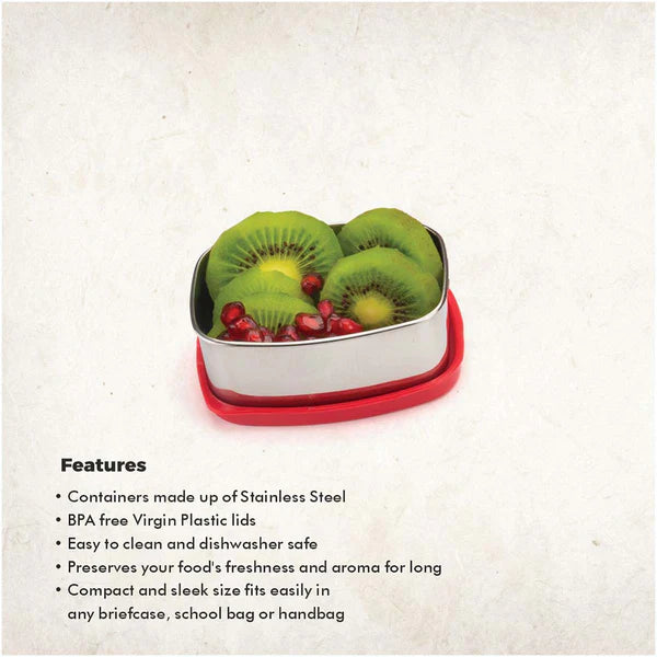 Cute Steel/Handy Steel Container is a small and trendy container to keep quick bites in it. This container is tough, sturdy, and made of 100% food-grade material which does not leach into your food even when packed with hot food.