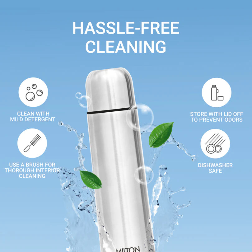 Milton Water Bottle has Double walled Vacuum Insulated technology that keeps beverages Hot or Cold for 24 hours. Inner Outer high-quality SS304 stainless steel with copper coating for better temperature retention. Our steel water bottle has leak proof design that keeps your bag dry, whether you're on the move. Tested for durability and corrosion resistance to guarantee the highest quality with 1 year warranty.