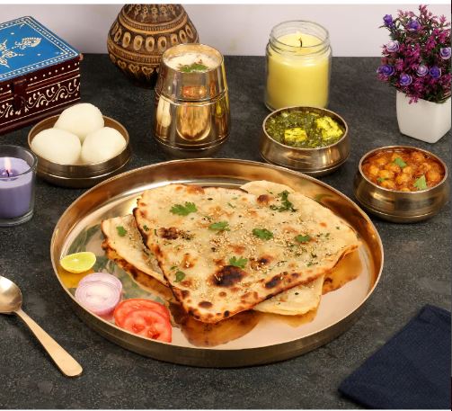 Traditionally it was considered best to have food in kansa plates The process of making starts with making metal ingots with 78-80 % copper and 22-20 % tin mixture. The ingot is heated by a group of artisans to specific shapes then a coating of salt and clay applied to firm up the metal. It takes 23 operations to make one kansa ware. Kansa dinner plates can be used for serving breakfast, lunch and dinner. Kansa has immense utility value in improving the quality of food being consumed.