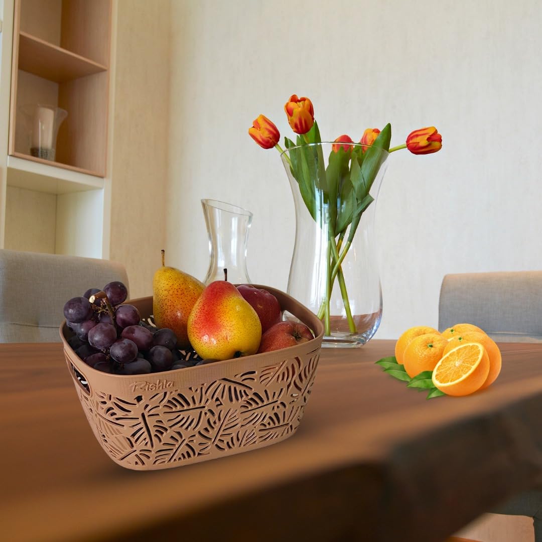 Monstera Design Plastic Storage Basket with Lid | Multipurpose Organizer Box for Kitchen, Bathroom, Toys & Office | Nestable, Durable & Elegant