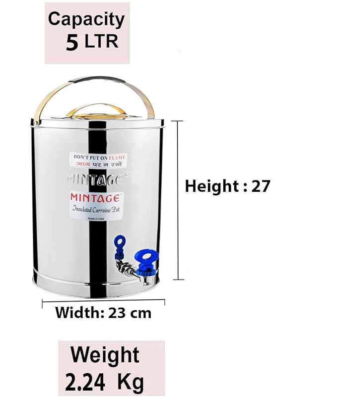 Stainless Steel Desire Tea Container With Leak Proof Tap | Milk/Soups/Coffee Tea Pot | Eco Friendly Hot & Cold Pot Office/Hotel | TeaPot Dispenser Jar |Chai Kettle For Canteen/Kitchen