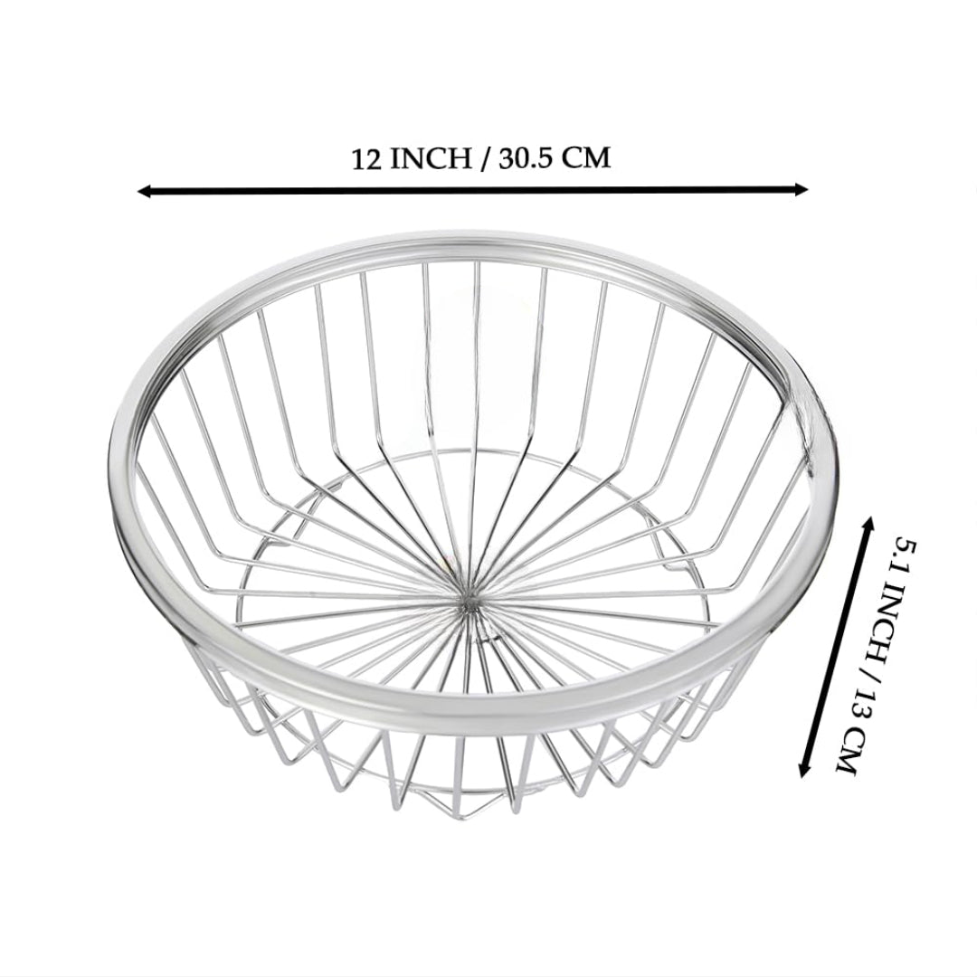 Stainless Steel Round Fruit Basket | Fruits Basket for Dining Table | Fruit & Vegetables Basket | (Diameter 31cm, Height - 14cm)